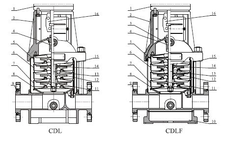 CDL/CDLF is a kind of vertical non-self priming multistage centrifugal pump,which is driven by a standard electric motor. The motor output shaft directly connects with the pump shaft through a coupling. The pressure-resistant cylinder and flow passage components are fixed between pump hesd and in-and outlet section with tie-bar bolts. The inlet and outlet are located at the pump bottom at the same plane. This kind of pump can be equipped with an intelligent protector to effectively prevent it from dry-running, out-of-phase and overload.